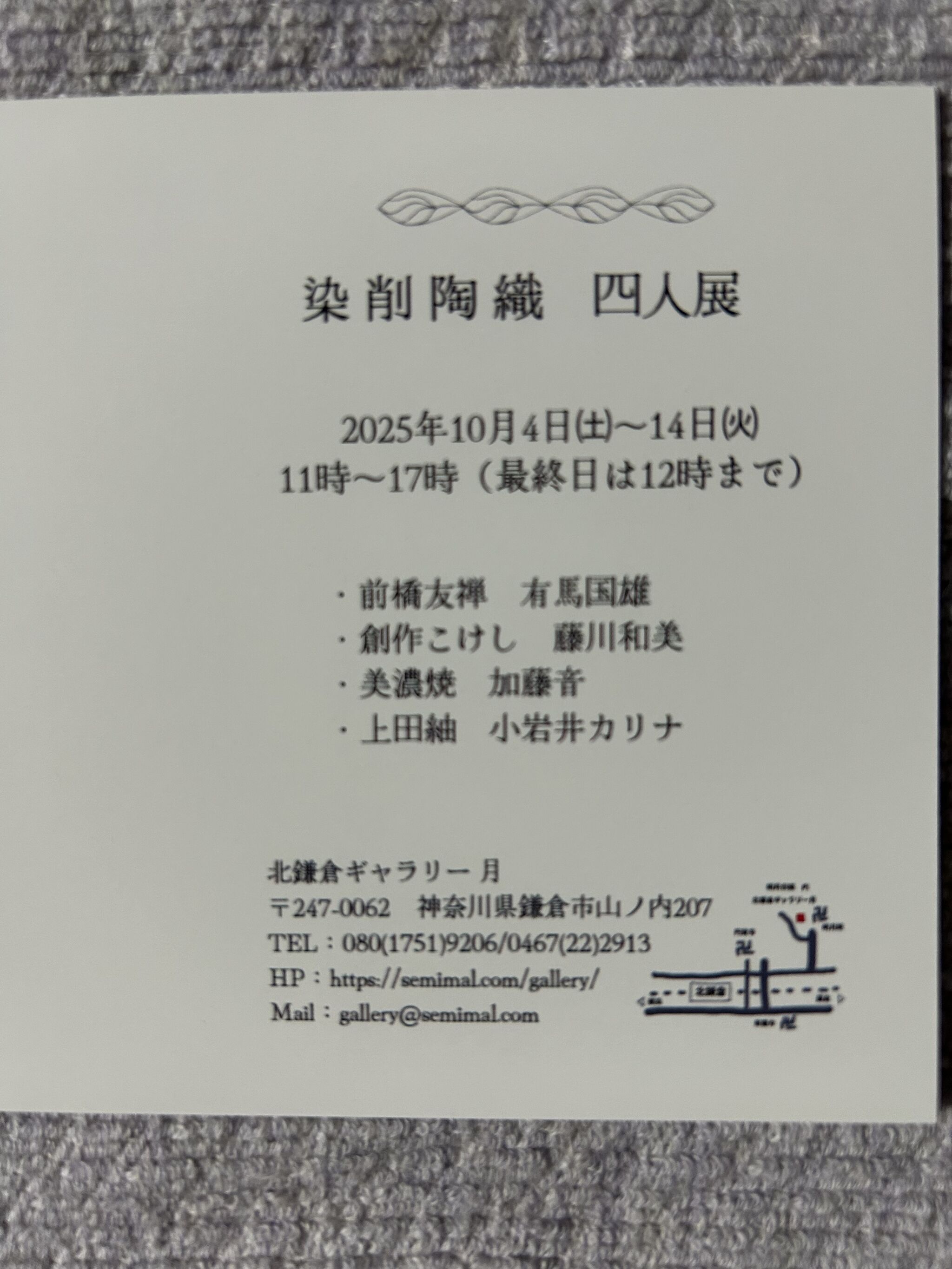 北鎌倉ギャラリー月さんにて、染削陶織4人展です