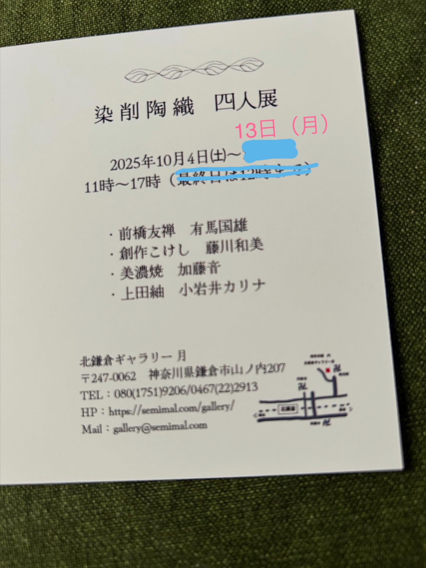北鎌倉、ギャラリー月さんでの工芸4人展も本日10/13が最終日となりました