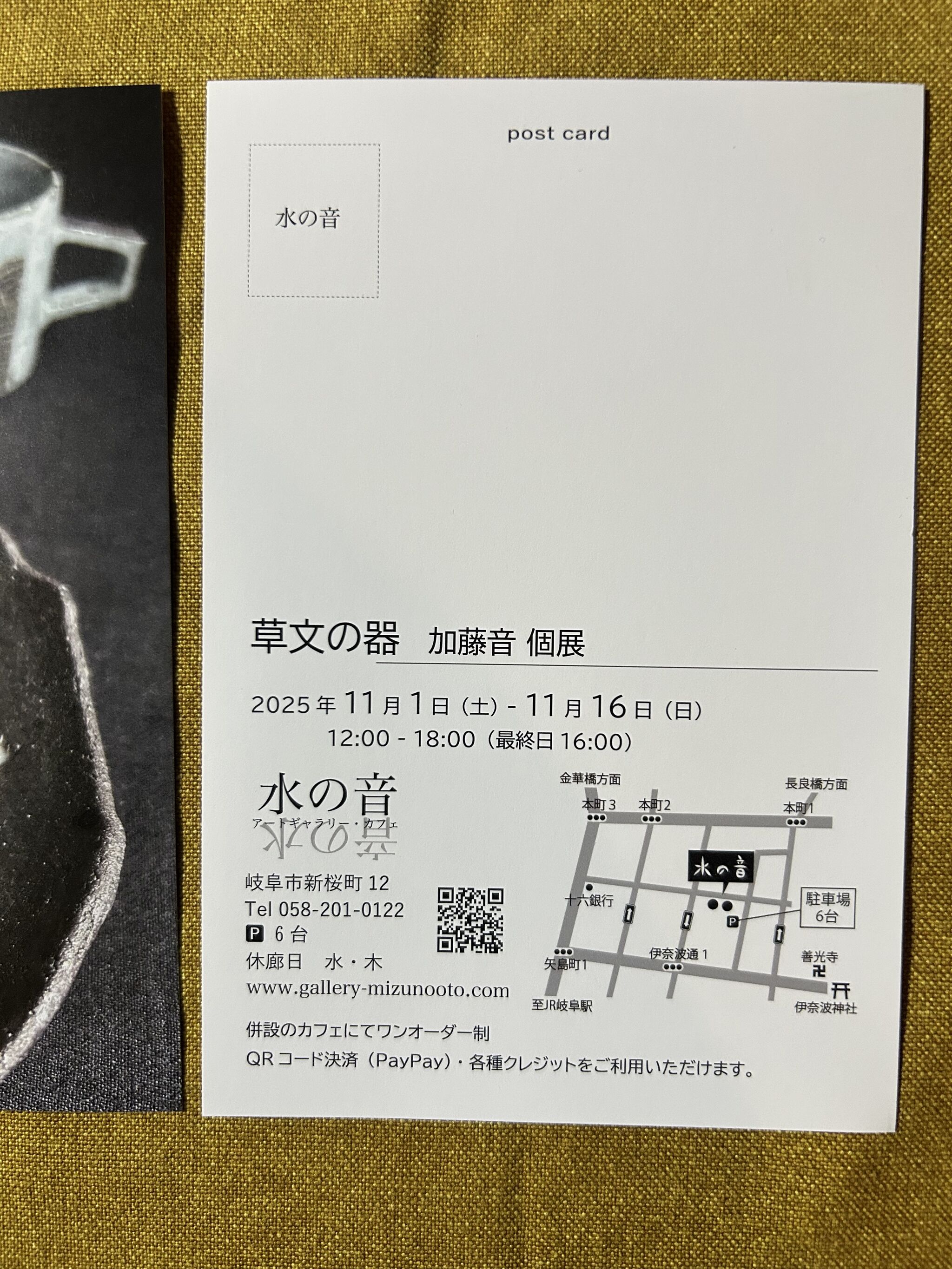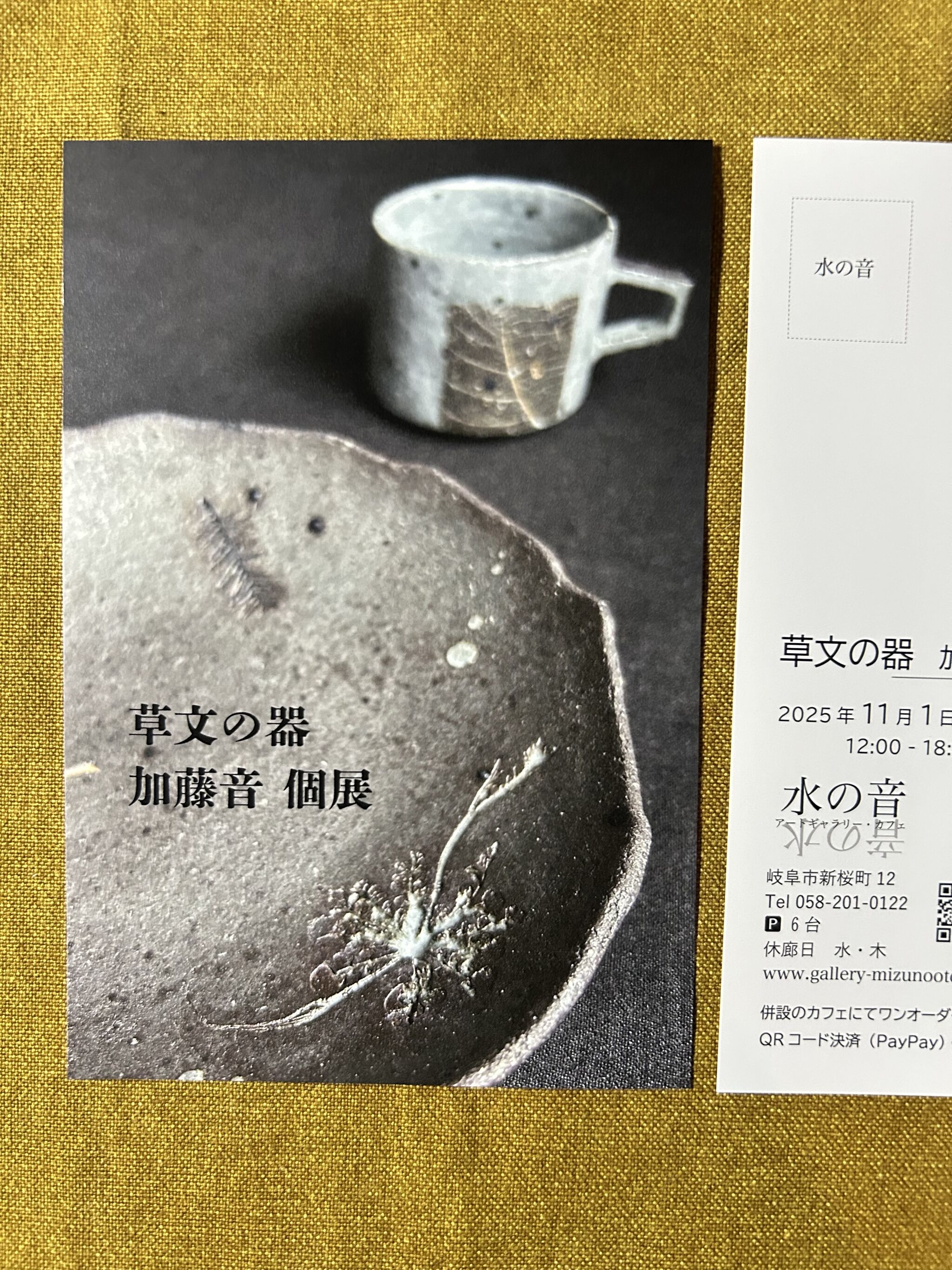 さて今回は、鎌倉4人展についてのこと、美濃焼伝産の秋のお祭りのこと、岐阜のギャラリー水の音さんの個展のお知らせなど、順を追ってお話ししたかったのですけど、なんかバタバタして間に合わず、秋の祭りも昨日で終わってしまいましたので、逆に次の個展のお知らせからさせていただきます。