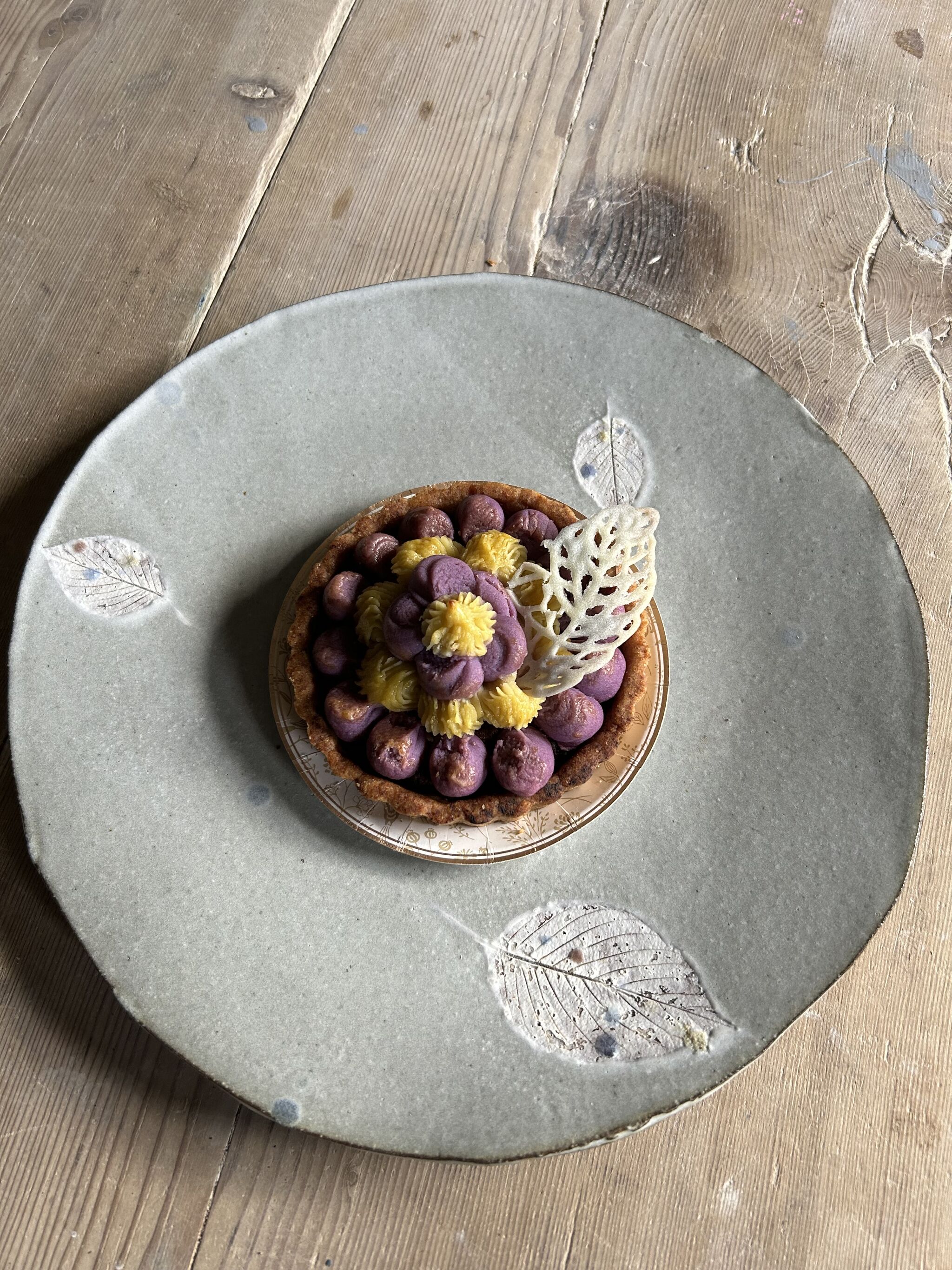 ↑ギャラリー水の音さんの個展最終日にタルトをいただいたのですけどね、これがまさかの手作りなのでございます。ポイントの葉っぱの部分も食べられるんですよ😳✨