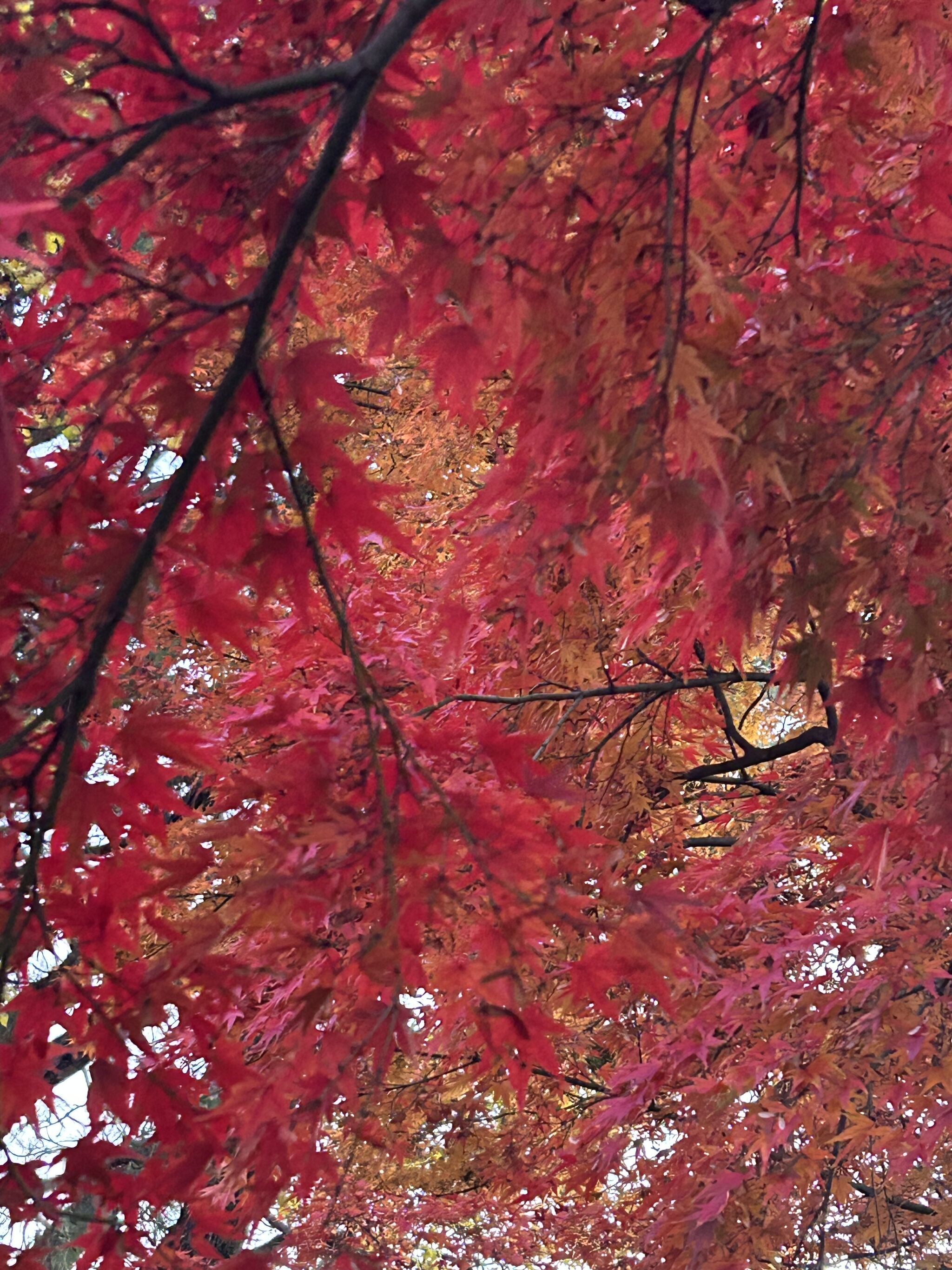 さて一昨日お散歩したら近所の公園が真っ赤になっていましたので秋の景色をシェアさせていただきますね